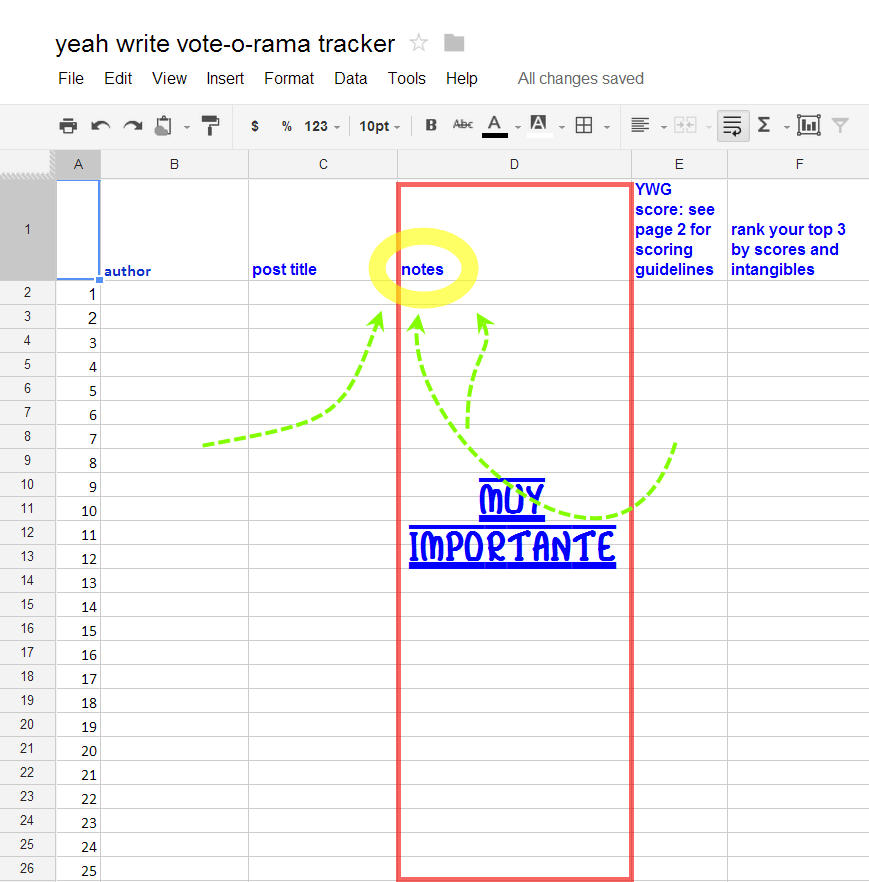 Read the helpful questions then score each entry based on your answers. Some are objective (such as spelling errors) and others are subjective (evidence of passion) and I’m the first to agree the rubric system of evaluating entries feels a little No Child Left Behind, but this should help develop our critical reading skills. You’ve got to know the rules to break the rules. Some bloggers (not here at yeah write!) think there are no rules. This rubric keeps everyone on the learning track.